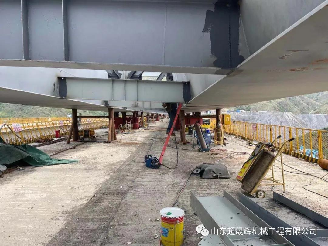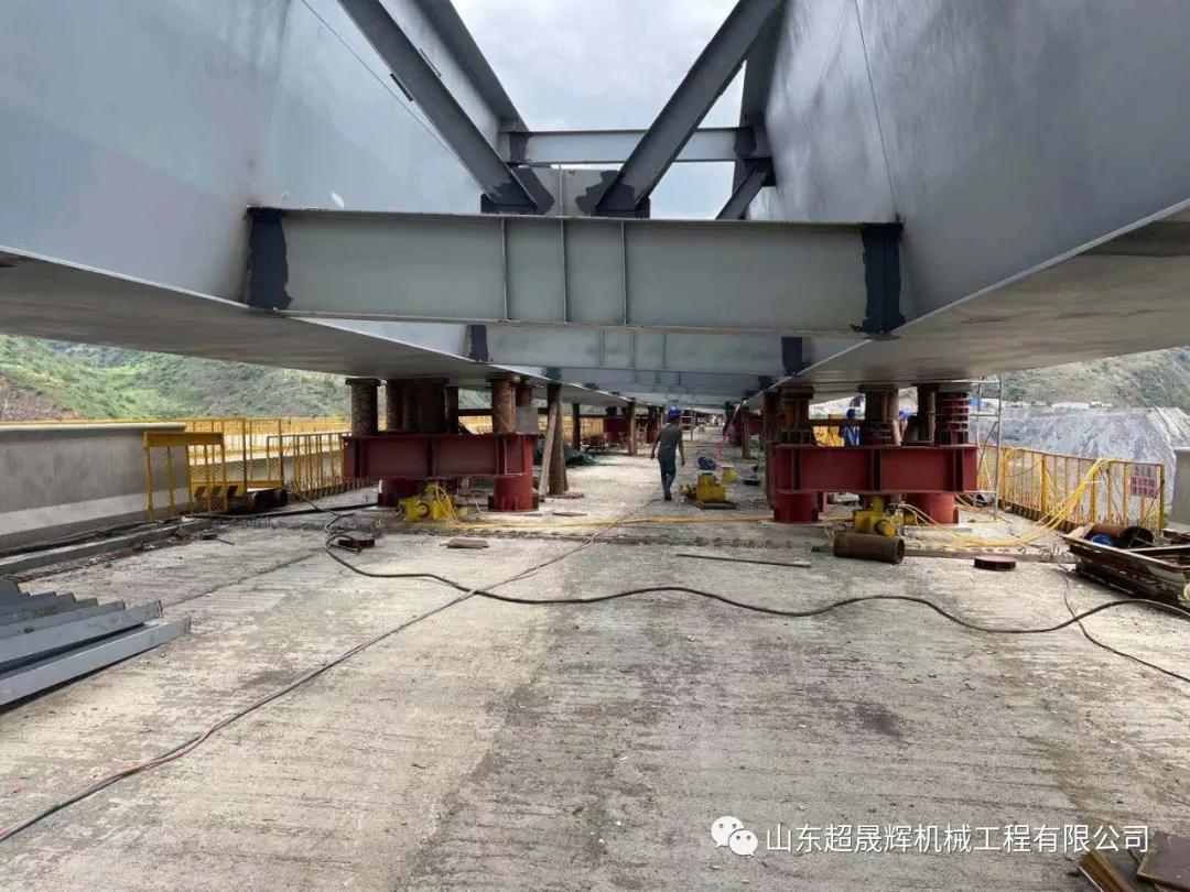 為滿足現場需求,山東超晟輝提供了24套350T步履式頂推設備,12套液壓泵站,12套PLC控制系統,10套200T落梁千斤頂等設備。