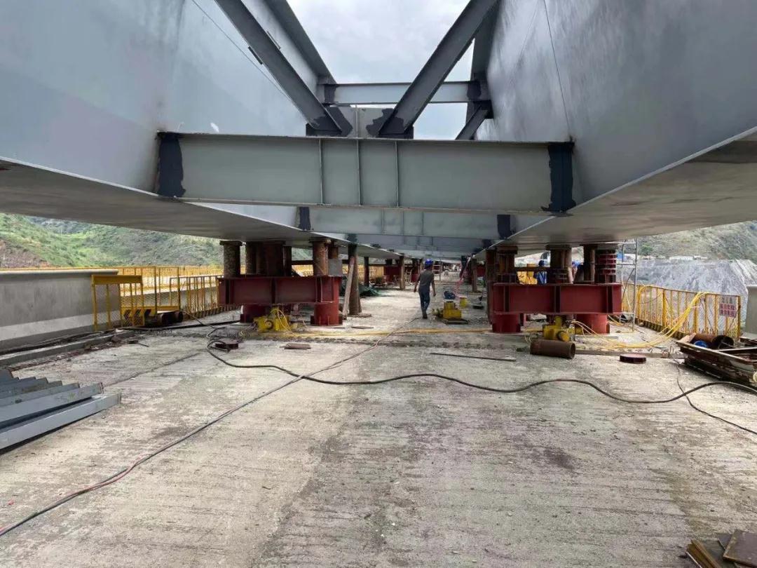 此項目由云南交投集團公路建設有限公司承建,山東超晟輝此次負責大橋鋼箱梁頂推及落梁工程。截止10月底,喬甸大橋主橋頂推施工已圓滿畫上了句號!