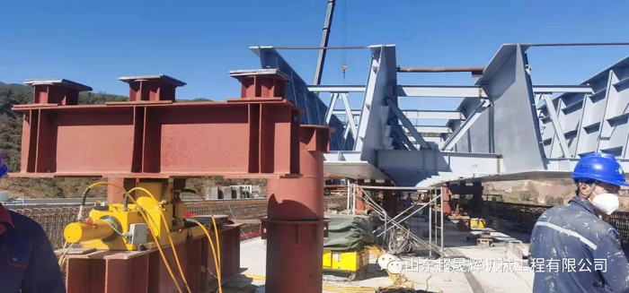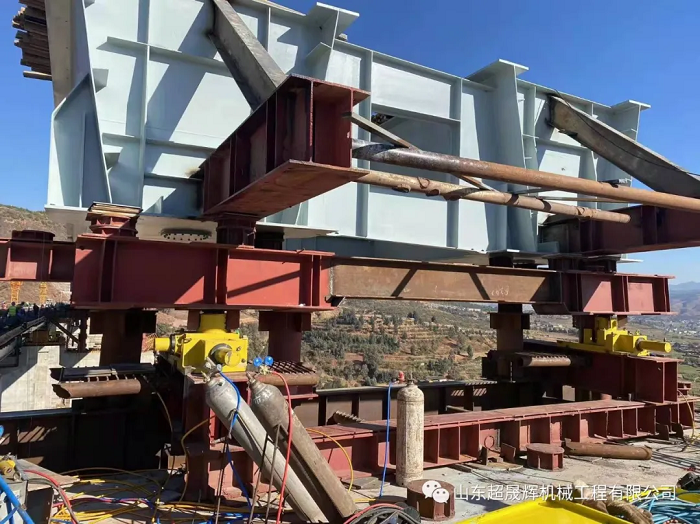 此項目由云南交投集團公路建設有限公司承建,山東超晟輝負責此次大橋鋼箱梁頂推及落梁工程,截止1月18日,大橋已安全順利落梁到位。