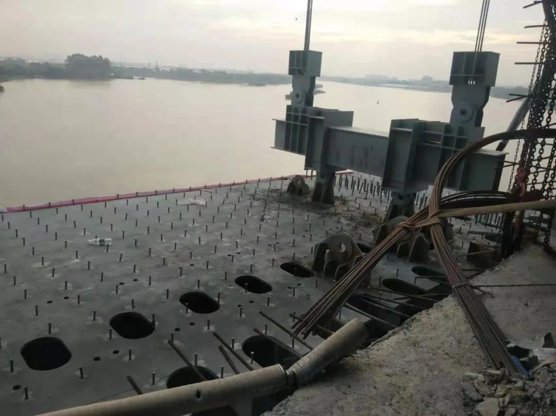 本項目由中鐵大橋局集團有限公司承建,山東超晟輝負責此次大橋主橋鋼箱梁提升工程。日前,施工作業正在有序推進中。